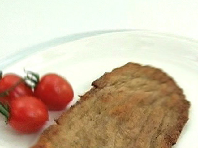 Блюдо из нежной телятины, панированное сухарями.Состав:телятина — 1 кусочек;яйцо — 1 штука;панировочные сухари, соль, оливковое масло. Язык: Русский