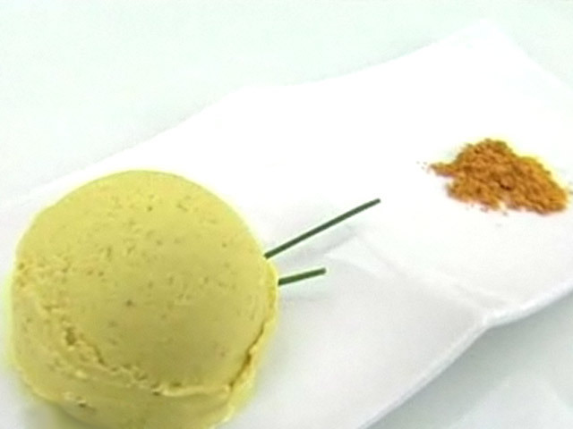 Рецепт легкого мороженого с карри.Состав:карри — 1 столовая ложка;сливки — 2 стакана;яичные желтки — 6 штук;соль, перец. Язык: Русский